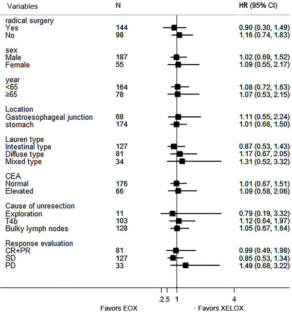 Figure 2: Forest plot of the treatment effect on overall survival in subgroup analysis
