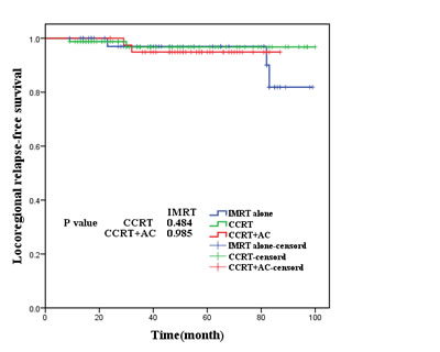 Figure 3: Locoregional relapse-free survival for the three groups of patients