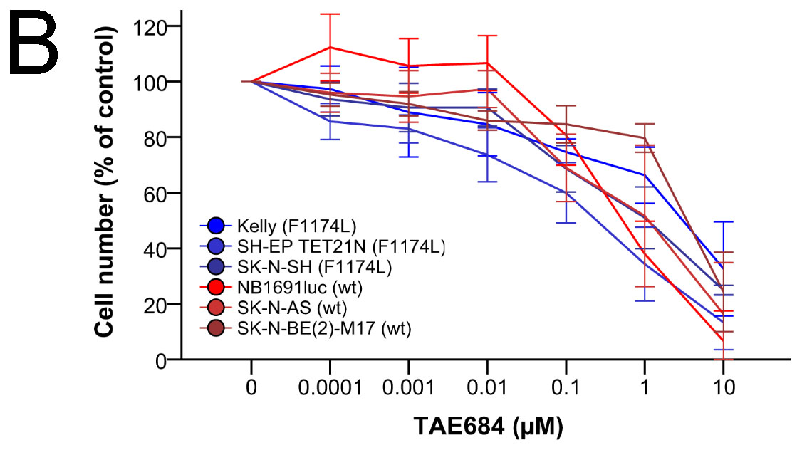 Consequently, we could show that inhibition of ALK using TAE684 induces a significant decrease in cellular proliferation of neuroblastoma cell lines (Figure 8B).