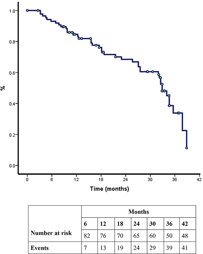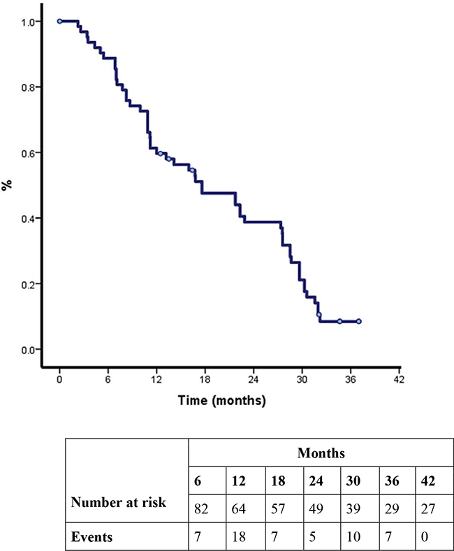 Statistical analyses were conducted using SPSS software 19.0 (SPSS, Chicago, IL, U.S.A.). Differences in clinical characteristics, overall response rate (ORR), PFS, OS and adverse events of patients with or without BIM deletion polymorphism (BIM-del+; BIM del-) were compared using the Pearson chisquare test or the Fisher’s exact test. Survival curves were drawn by the Kaplan–Meier method, and statistical analysis was performed using the log-rank test. We used univariate analysis and multivariate Cox regression analysis (including type of EGFR mutation, BIM-del, response to TKIs, ECOG and brain metastases) to identify factors associated with PFS and OS. We studied the following clinical characteristics: age, sex, performance status, stage, weight loss, site of metastasis (brain, bone, lung, liver, lymph nodes), type of EGFR mutation [common mutations (L858R and exon 19 deletion) vs. uncommon mutations], EGFR-TKI response, chemotherapy response, smoking history, and BIM-del. For any purpose ORR was defined as the proportion of patients with tumor size reduction during TKI treatment, PFS was defined as the length of time between starting TKI and disease progression or death, and OS is the period of time from date of diagnosis until death.