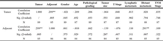 Table 1: Correlations with IL-35 expression in tumor and tumor-adjacent tissues