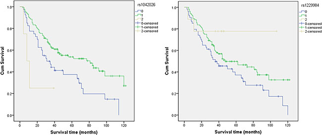 Figure 2: The individual effects of rs1042026 and rs1229984 on overall survival.