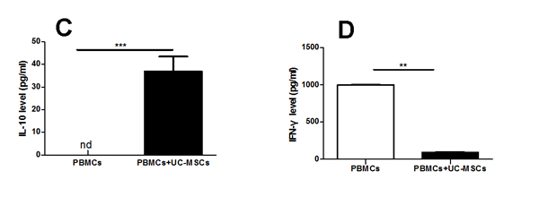 UC-MSCs significantly improved regulatory cytokine production in co-cultures