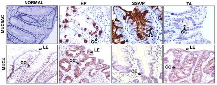 29. Biemer-Huttmann AE, Walsh MD, McGuckin MA, Ajioka Y, Watanabe H, Leggett BA, Jass JR. Immunohistochemical staining patterns of MUC1, MUC2, MUC4, and MUC5AC mucins in hyperplastic polyps, serrated adenomas, and traditional adenomas of the colorectum. J Histochem Cytochem. 1999; 47: 1039-1048.