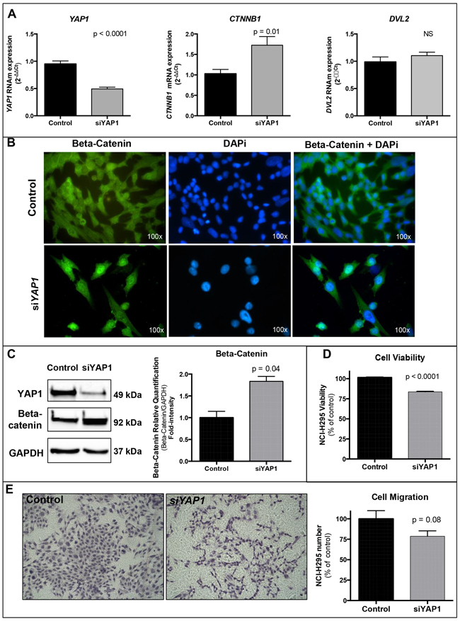 YAP1 silencing increases CTNNB1/Beta-Catenin regardless of DVL2 mRNA expression (Figure 4A–4C)