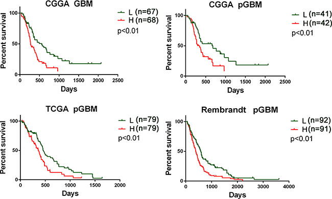 Whole transcriptome sequencing of 233 gliomas were obtained from Chinese Glioma Genome Atlas (CGGA) database (http://www.cgga.org.cn) [29]. The other two datasets were downloaded from the repository for the Cancer Genome Atlas (TCGA) dataset (http://cancergenome.nih.gov) and the molecular brain neoplasia data (REMBRANDT, http://caintegrator.nci.nih.gov/rembrandt).