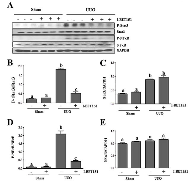 I-BET151 suppresses the phosphorylation and acetylation of NF-κB and STAT3 in the UUO injured kidney