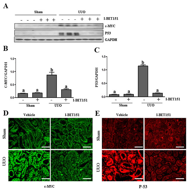 I-BET151 inhibits UUO injury-induced expression of c-Myc and p53 in the kidney