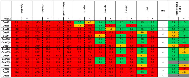 Here, we have modified the 3D-TGA to allow it to be used for cells derived from small biopsies such as those taken endoscopically prior to chemotherapy treatment of oesophageal cancer. This would allow the evaluation of the chemo-naïve tumour within a clinically-relevant timescale of 3 weeks, whilst the patient is progressing through the histological diagnosis, multicomponent staging and cancer MDT pathway [8], before referral for consideration of neo-adjuvant chemotherapy. The assay is amenable to pharmacological testing in a 384-well format allowing numerous drugs and combinations to be tested simultaneously. The clinical validity was assessed by comparing the chemo-sensitivity measured in the 3D-TGA with the actual clinical response, as measured by the Mandard tumour regression grade (TRG). [9]