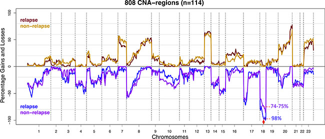 Loss of 18q12.1-18q12.2 was associated with tumor relapse