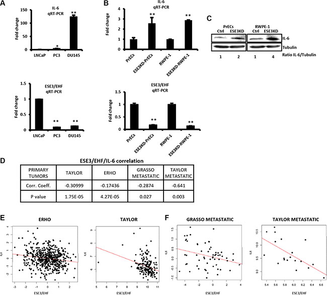 IL-6 is inversely correlated to ESE3/EHF in prostate cells and tumors