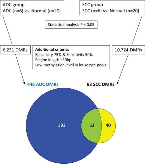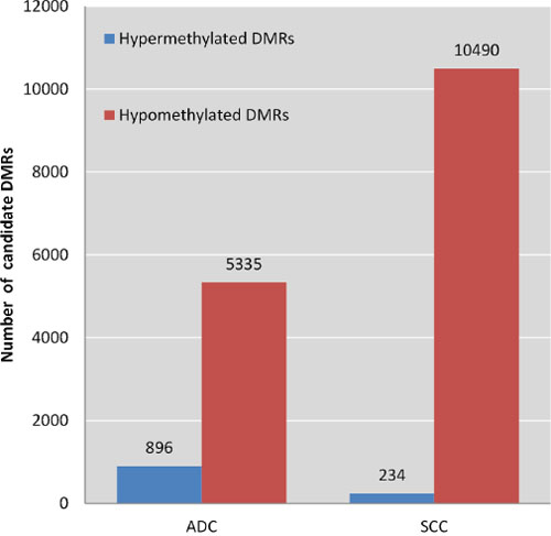 Figure 3: Frequencies of hyper- and hypomethylated regions in ADC and SCC.