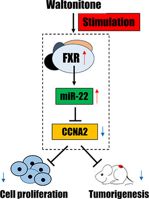 Figure 7: A summary diagram of the anti-tumor effect of WA through FXR-miR-22-CCNA2 axis.