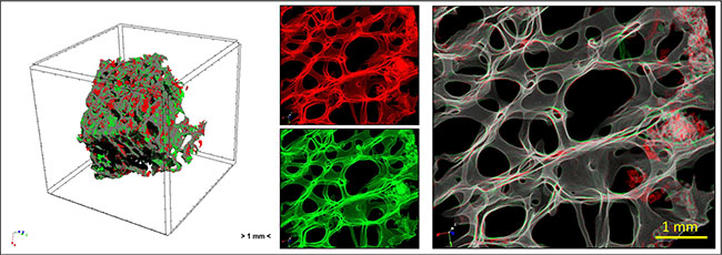 Figure 12: Overview of the study by micro-CT analysis: human femoral head bone specimens were scanned at T0 and T1 and 4D micro-CT analyses was applied to identify regions of bone formation (green) and resorption (red).
