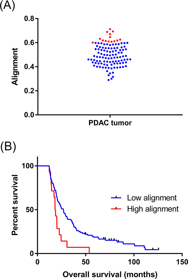 SHG imaging reveals collagen alignment is elevated around PDAC cells and predicts poor survival
