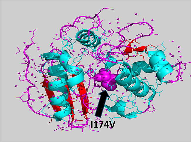 Figure 3: Tridimensional visualization of MGMT p.Ile174Val (I174V).