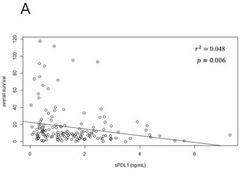 This study demonstrated that sPDL1 could be measured by ELISA in the serum of BTC patients and that high level of sPDL1 was a negative prognostic factor in BTC patients who received palliative chemotherapy. NLR and SII which represent a host immune-inflammation state were also significant prognostic factors for survival in univariate analysis, and only NLR was significant in multivariate analysis.