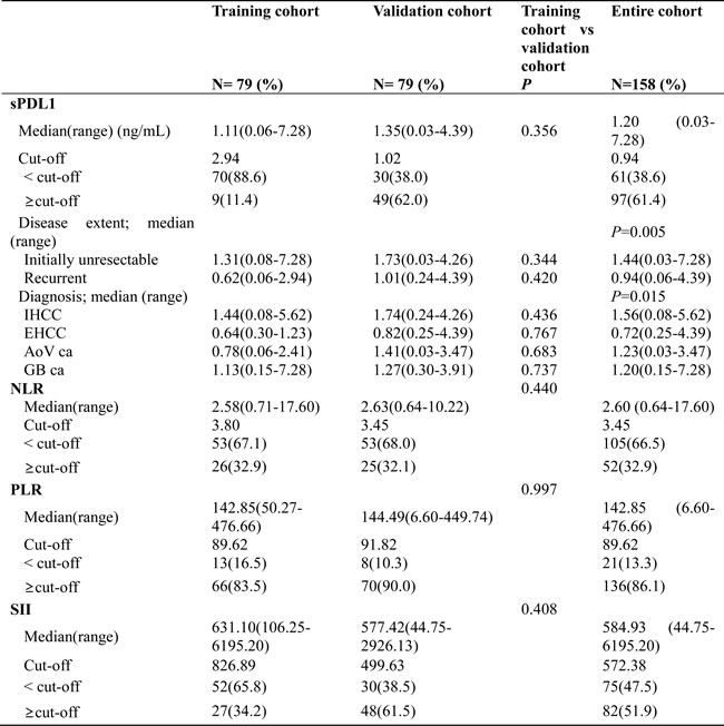 Despite the limitations, a prognostic impact of the host immune-inflammation system in BTC patients was uncovered in our study. To the best of our knowledge, this is the first study on the role of sPDL1 in BTC patients. In addition, analysis was performed in a relatively large cohort and by dividing the respective cohort for more exact validation.