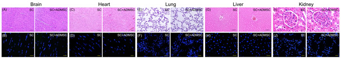 Histopathological findings for identification of ADMSC/ADMSC-derived exosomes in brain, heart liver and lung tissues