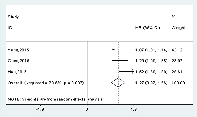 Figure 2: Meta-analysis of the pooled HRs of OS in solid cancers.
