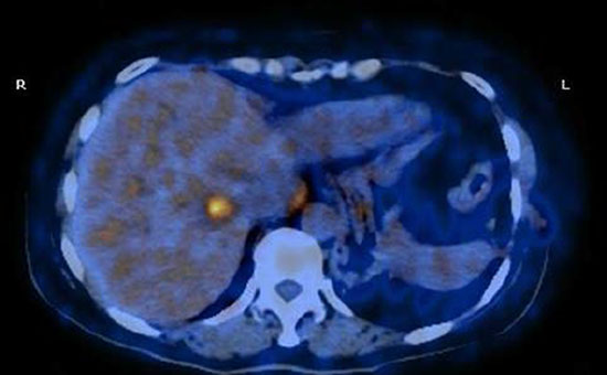Figure 5: PET/CT scan showing multiple malignant lesions in the liver and suggesting liver metastases.