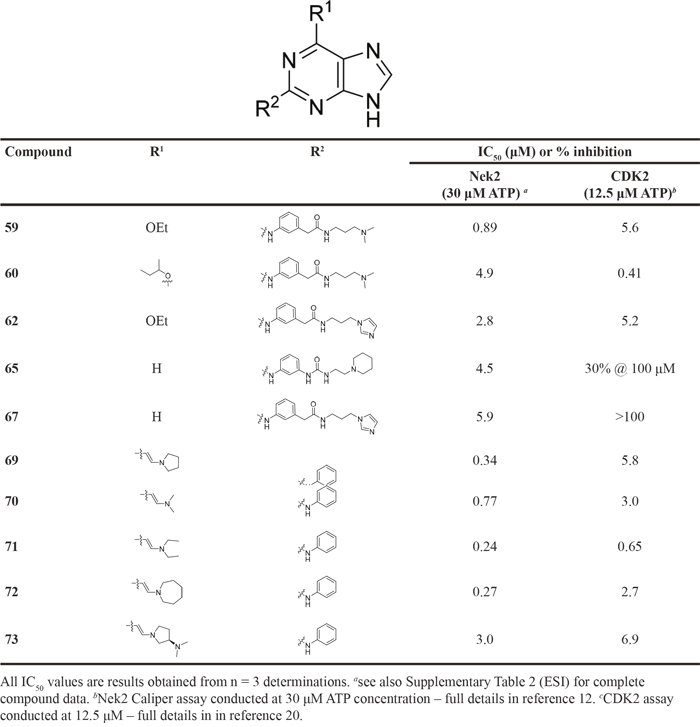 Table 3: Nek2 and CDK2 inhibition by selected 6-unsubstituted and 6-substituted purines. a
