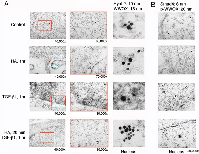 Immunoelectron microscopy of HA-induced nuclear relocation of WWOX and Smad4