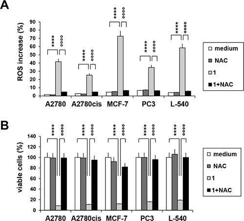 Hodgkin lymphoma (L-540) and human androgen-resistant prostate cancer (PC3) cell lines were obtained from the German Collection of Microorganisms and Cell Cultures (Braunschweig, Germany), human breast adenocarcinoma cell line MCF-7 (HTB-22TM) from the American Type Culture Collection (ATCC, Rockville, MD, USA). Human ovarian epithelial carcinoma-derived cancer cells A2780 and its cisplatin-resistant clone A2780cis were from Sigma Inc (St. Louis, MO,USA) and isogenic cisplatin-resistant 2780CP-16 model developed by sequential exposure of the A2780 cell line to increasing concentrations of cisplatin, as previously described [39]. Cisplatin was obtained from surplus clinical samples from the clinical pharmacy associated with Centro Riferimento Oncologico di Aviano. A panel of non-small cell lung cancer (NSCLC) cell lines H460, A549, H226, H838, H157, H1975, H2122, SKLU1 and H1299 were obtained from Dr. Garth Powis at MD Anderson Cancer Center. The parent cisplatin-resistant subclone (A2780cis) was maintained by weekly treatment with 1 μM cisplatin [38]. The resistance in 2780CP-16 cells was stable and did not require cisplatin maintenance. Cells were cultured at 37°C in 5% CO2 in RPMI (L-540, A2780, A2780cis, 2780CP-16, PC3 and the panel of lung cancer cells) or DMEM (MCF-7) medium supplemented with 10% heat-inactivated fetal calf serum (FCS; Sigma-Aldrich-Italy), 0.2 mg/ml penicillin/streptomycin and 0.1% (w/v) L-glutamine (Biocrom) at 37°C in a 5% CO2 fully humidified atmosphere.