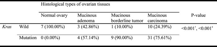 Not any Kras gene mutation was detected in all cases of this type of ovarian tissue (n = 0/7). (Table 1)