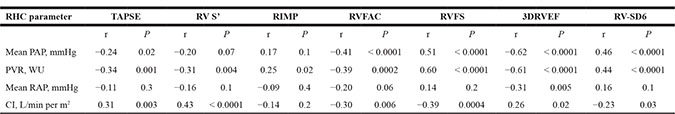 RVEF measured by 3D echocardiography could be a useful parameter for noninvasively assessing RV hemodynamics and predicting clinical outcomes in patients with PAH.