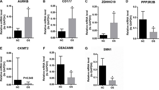 Total RNA of 14 OS samples of normal tissues, 19 OS samples without metastasis and 19