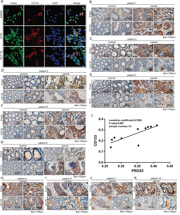 Prdx2 is associated with CD133 in colon carcinoma