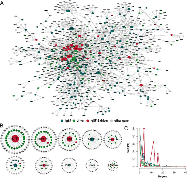 IgSF genes associate with driver genes in functional modules