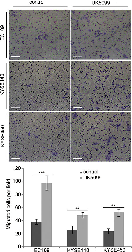 UK 5099 treated esophageal squamous cancer cells were highly migratory