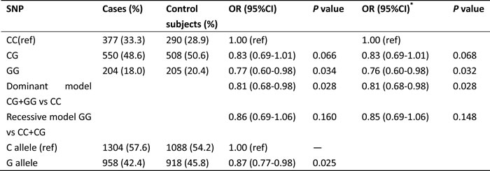 Table 2: The association of miR-146a polymorphism and lung cancer risk