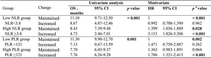 Table 6: OS analysis of NLR and PLR with co-analysis of dynamics of NLR and PLR during chemotherapy.