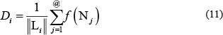 where Di is the density of the nucleotide Ni at the site i of a RNA sequence, Li the length of the sliding substring concerned, @ denotes each of the site locations counted in the substring, and