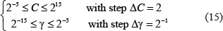 In the current study, the LibSVM package 3.18 was used to implement SVM, which can be freely downloaded from http://www.csie.ntu.edu.tw/~cjlin/libsvm/. Because of its effectiveness and fast speed in training process, the radial basis kernel function (RBF) was used to obtain the best classification hyperplane here. In the SVM operation engine, the regularization parameter C and the kernel width parameter γ were optimized via an optimization procedure using the grid search approach as described by