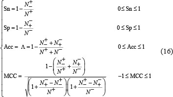 For the rigorous but intuitive definitions about Sn, Sp, Acc, and MCC, see Eq.16 given later.