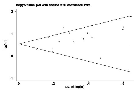 Nevertheless, several limitations of this study must be carefully considered (1) the major limitation of this meta-analysis was that tumor types included in this study were limited and the number of studies dealing with each type of cancers was ≤5, so that the results of the specific carcinomas might be less powerful; (2) the studies were almost retrospective and all were published in English, which was more susceptible to some biases; (3) the cutoff values of RDW were different; (4) studies lacking sufficient data were also excluded from the meta-analysis.