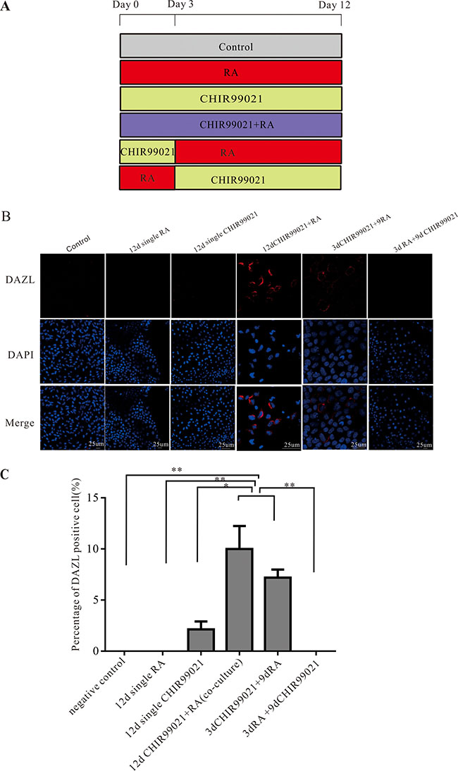 CHIR99021 combined with RA induces the emergence of primitive DAZL-positive cells