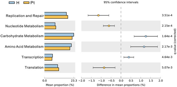 57. Parks DH, Tyson GW, Hugenholtz P and Beiko RG. STAMP: statistical analysis of taxonomic and functional profiles. Bioinformatics. 2014; 30(21):3123-3124.