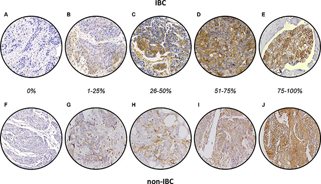 Here, as a first step and to validate our initial observation, we evaluated and compared MARCKS protein expression in 133 IBC and 369 non-IBC tumor samples collected from French and Tunisian patients. Correlations were established between protein expression and clinicopathological features.