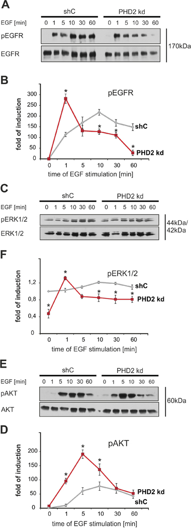 Knockdown of PHD2 affects EGFR activation in response to EGF