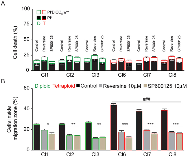 Altogether, our results show that compared to diploid, tetraploid clones developed a more aggressive behavior characterized by increased motility and invasiveness.