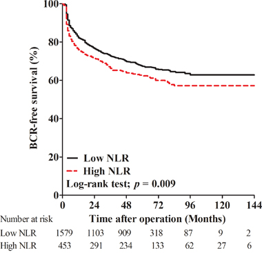 In conclusion, our study demonstrates that postoperative NLR is an independent prognostic factor for BCR and OS in patients who underwent RP for PC. As our findings suggest, we believe NLR can be a valuable tool for not only stratifying high-risk patients, but also for facilitating the decision-making of postoperative therapy for patients with prostate cancer.