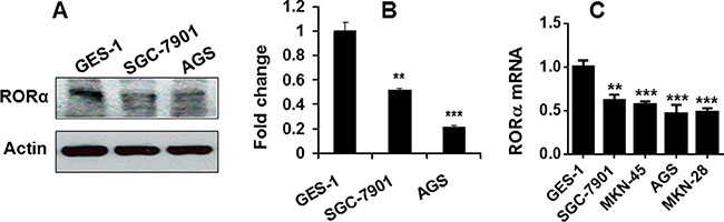 Expression of RORα was reduced in human gastric cancer cell lines
