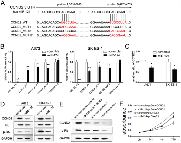 miR-124 regulated cell cycle progression through inhibiting CCND2 and p-Rb