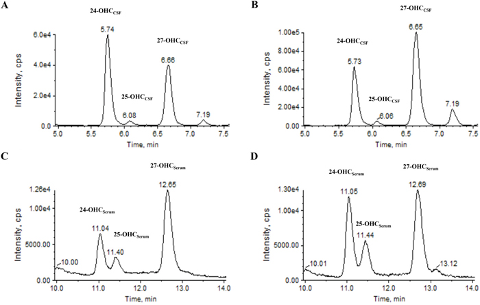 Measurement for the CSF and serum level of 24-, 25-, and 27-hydroxycholesterols