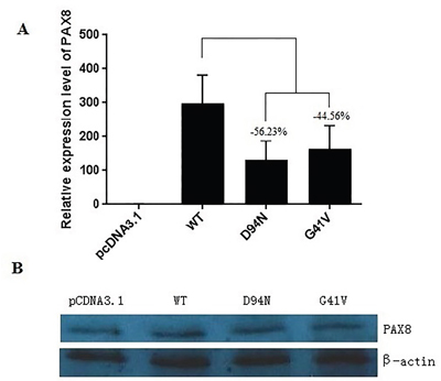 Effects of G41V and D94N mutations on the transcribing activities of PAX8